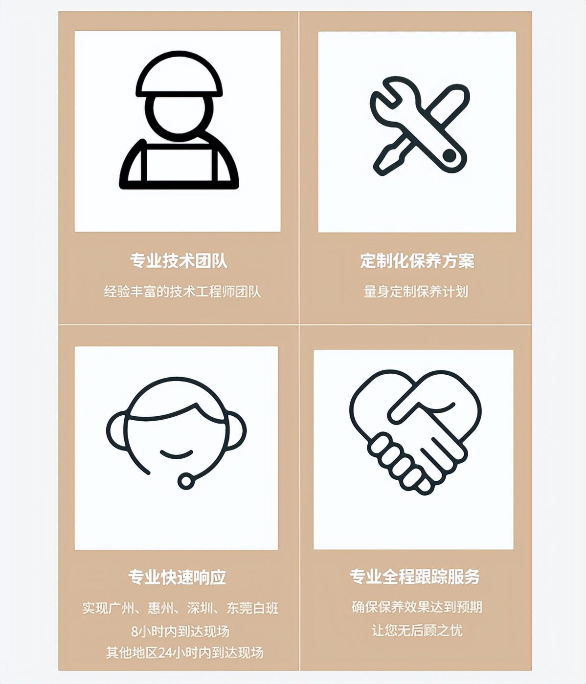 快速响应:广东省内 8 小时到场,省外 24 小时响应,最大限度缩短停机时间。